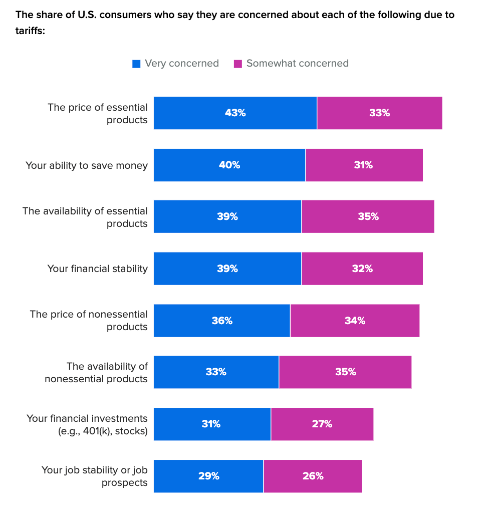 Most U.S. consumers believe companies will pass on 50%-100% of the cost of the Trump tariffs to them and are especially worried about the prices of essential goods like groceries, gas and automobiles. Ahead of the reciprocal tariffs’ anticipated July 9 implementation deadline, many consumers have already altered their behavior to undertake more DIY projects, delay large purchases and seek additional work.