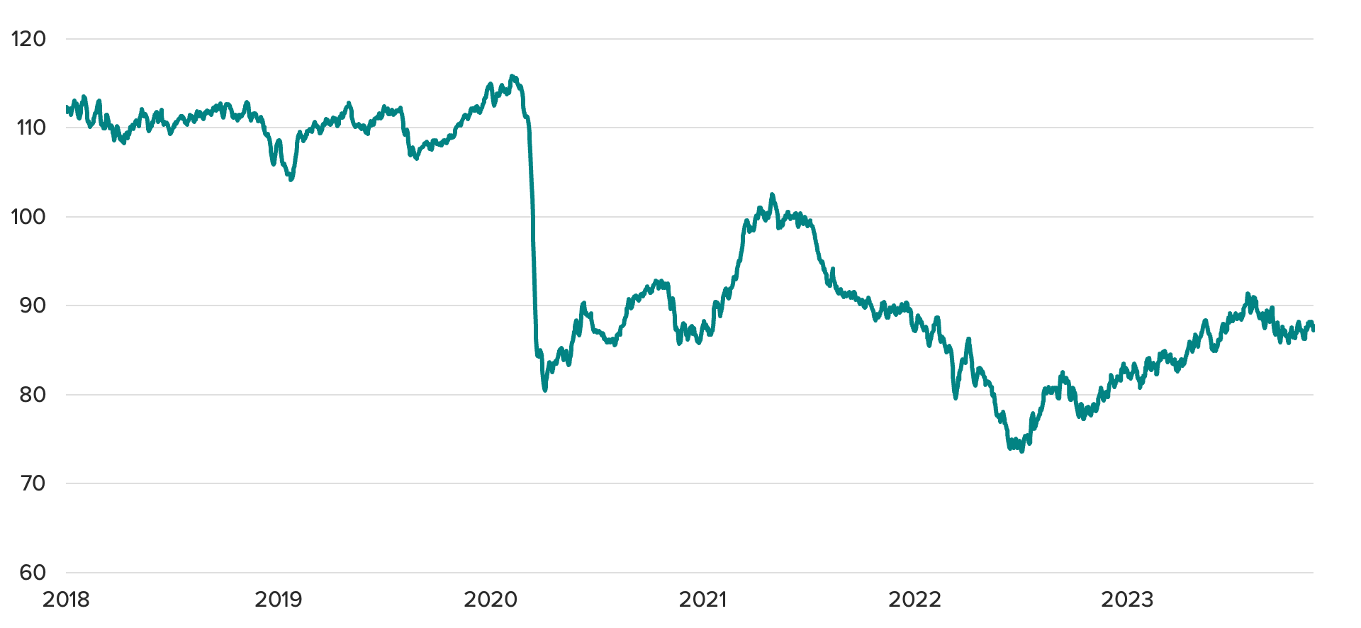 Although the unemployment rate is near historic lows, price growth has come down from its highs last summer and gross domestic product continues to grow robustly, consumers’ moods are dour: 80% of respondents in a recent Morning Consult survey gave the economy a C rating or below. In addition, consumer sentiment indexes, including Morning Consult’s daily Index of Consumer Sentiment, have not recovered to their pre-pandemic levels, even though many economic indicators show conditions better than or close to pre-pandemic levels.
