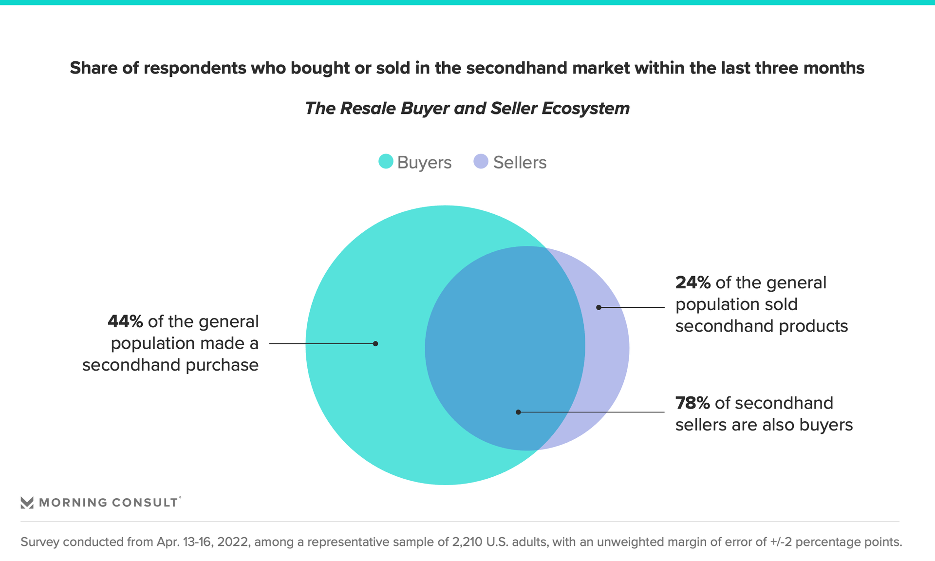 Resale’s explosive growth is reeling in brands and consumers alike, with the latter flocking to the secondhand market for practical reasons such as financial savvy and supply chain constraints, or for more emotional reasons like the desire to shop sustainably and participate in a growing community. Morning Consult surveys show that in just the last three months, 44% of U.S. adults bought a secondhand item and 24% sold one, with clothing, books, games and furniture being the most common resale categories.