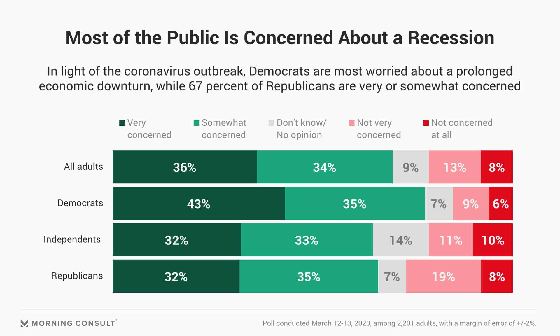 American consumers have grown increasingly worried about the impact of the coronavirus on the economy. Now, 70 percent of U.S. adults say they are concerned about a recession, according to a new Morning Consult poll.