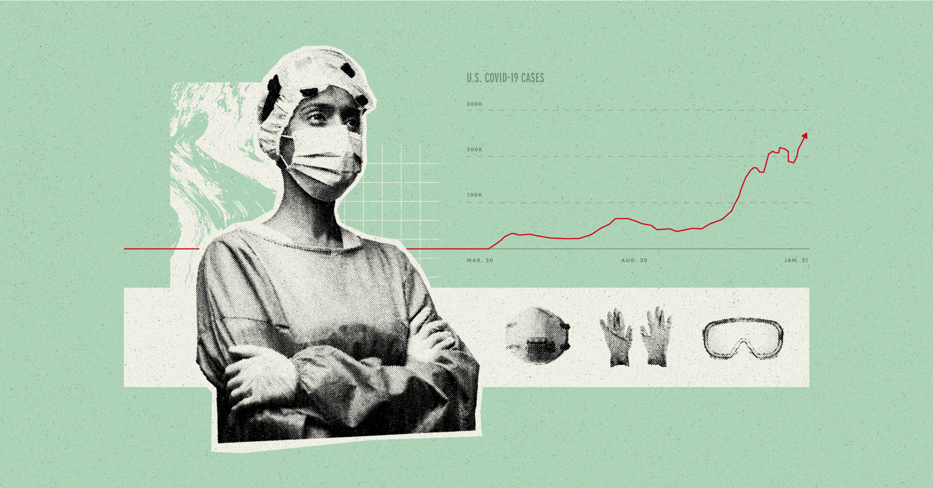 Another issue during the pandemic has been ensuring that health care workers possess the necessary supplies to do their jobs safely. During the early months, many facilities lacked adequate amounts of personal protective equipment -- gloves, masks, face shields, gowns -- for workers treating COVID-19 patients and in some cases were forced to reuse PPE.