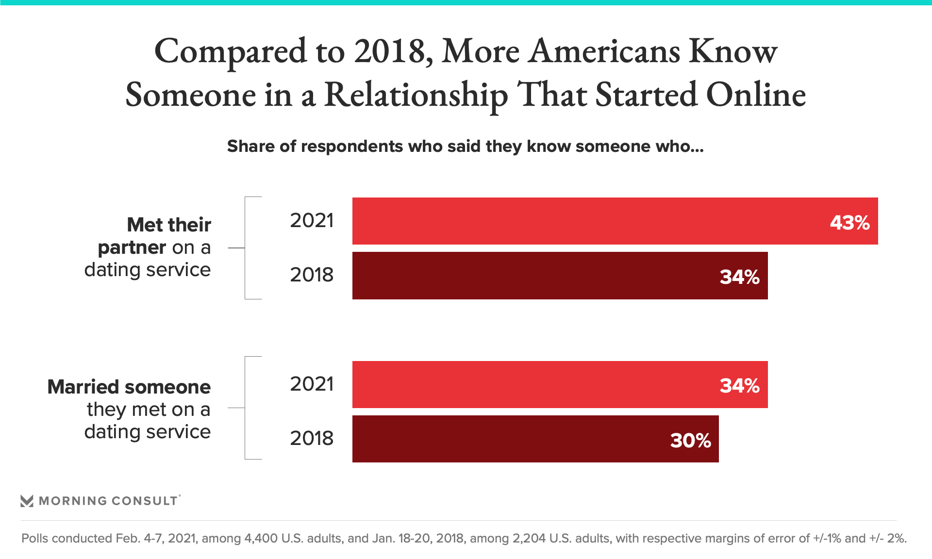 43% of Americans know someone who met their long-term partner online, up from 34% in 2018