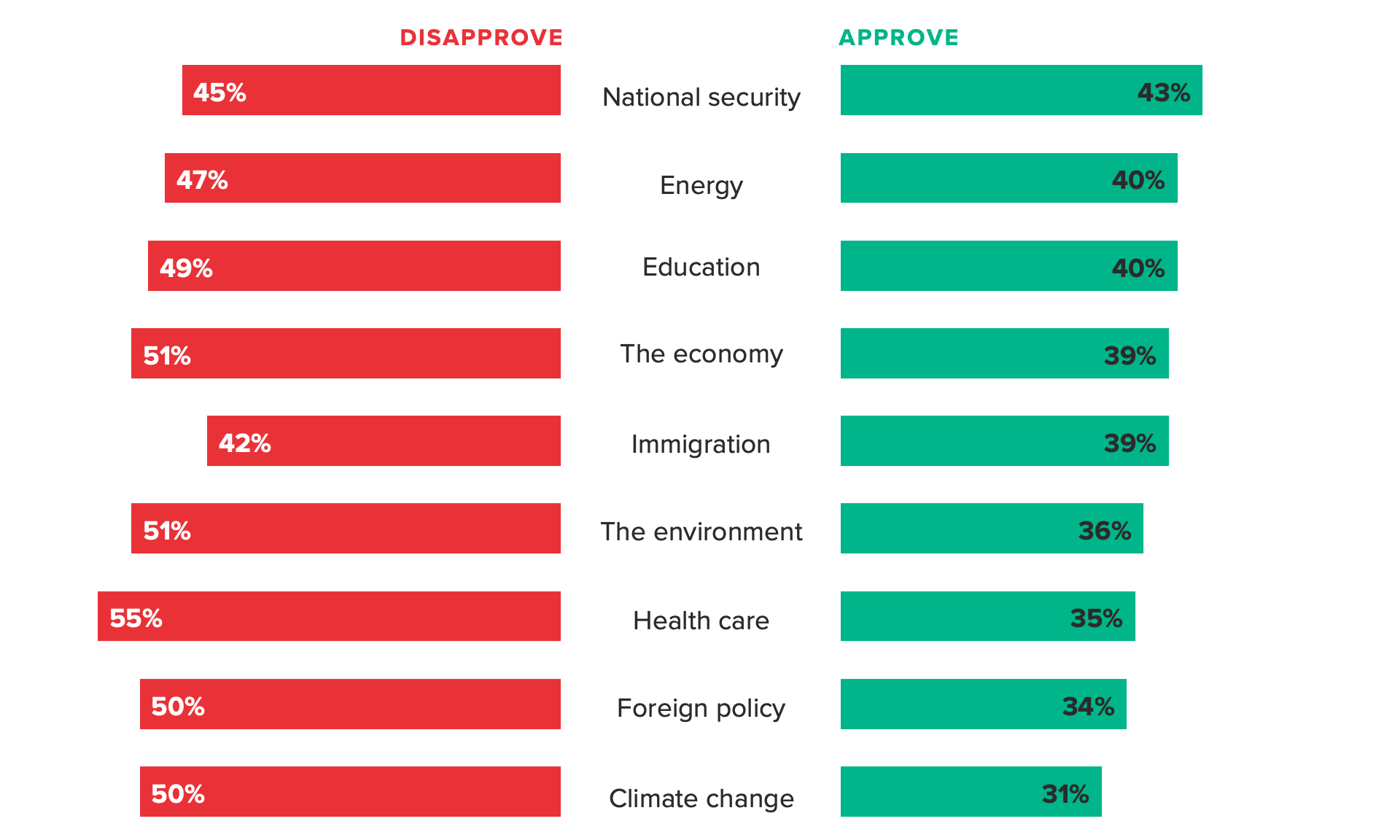 More Brazilians disapprove than approve of Bolsonaro’s handling of every issue area surveyed. In fact, only on national security and immigration is approval within at least 6 percentage points of disapproval. (The survey has a 3-point margin of error.)