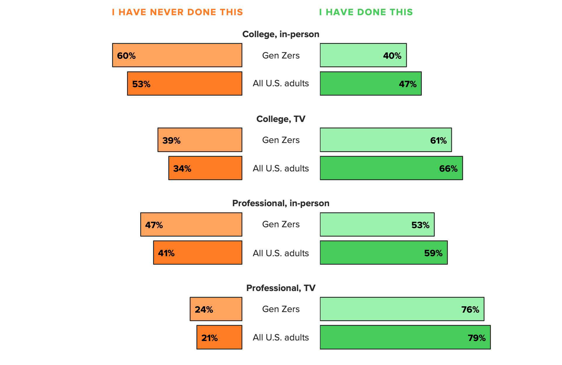 Nearly half of Gen Zers (47%) said they have never watched a professional sporting event in person.