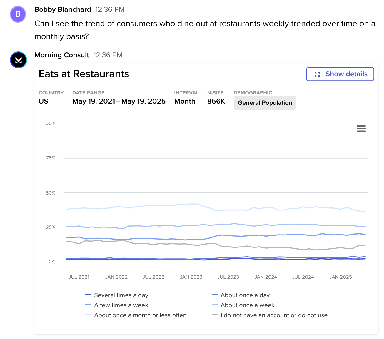 I'm kidding — hopefully that’s obvious. But if you feel pressure to tip at more businesses than before, you’re not alone. According to a new analysis by my colleague Lindsey Roeschke, one in every three U.S. adults says the frequency or amount they’re expected to tip has increased in the last five years. But the place consumers most say is necessary to tip remains the independent restaurant. With that in mind, we wanted to use Morning Consult Intelligence to dive into the cohort of consumers who are dining out at restaurants weekly.