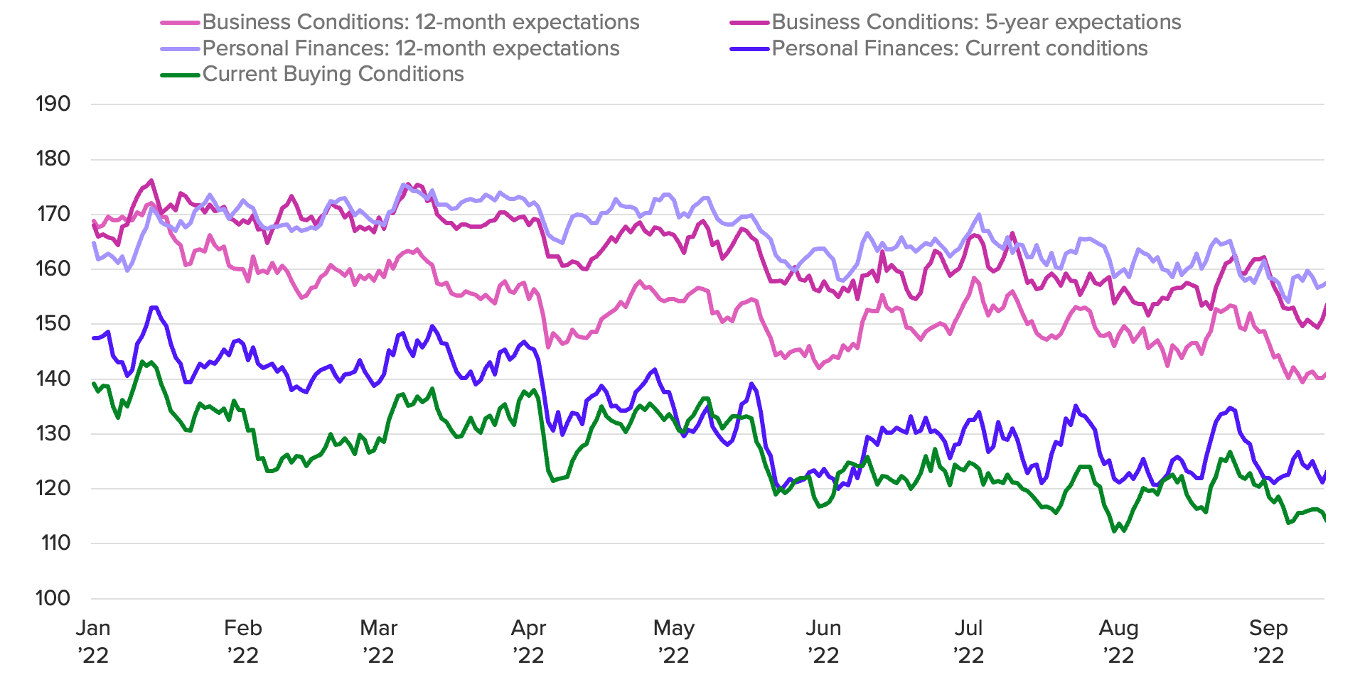 The Morning Consult China Index of Consumer Sentiment has fallen considerably in 2022 as waves of lockdowns and real estate market worries rattled consumer confidence.