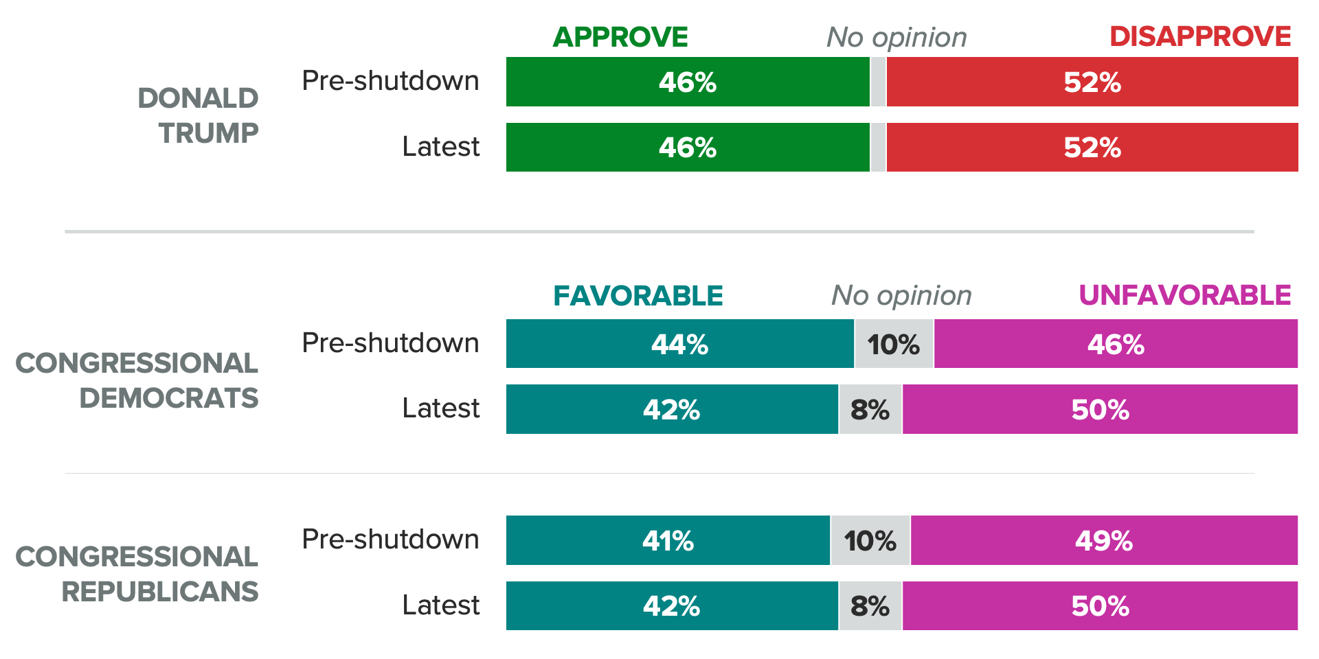 With both sides of the funding debate showing little inclination to budge from their current positions, these findings will do little to change the political calculus for Republican and Democratic leaders, who have plenty of motivation to dig in and continue a stalemate.