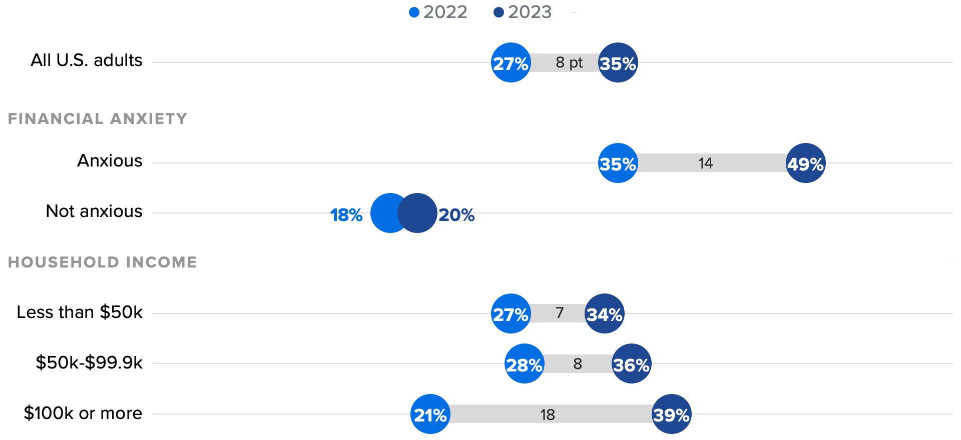 2023 saw an increase in the BNPL consideration among high income and financially anxious shoppers