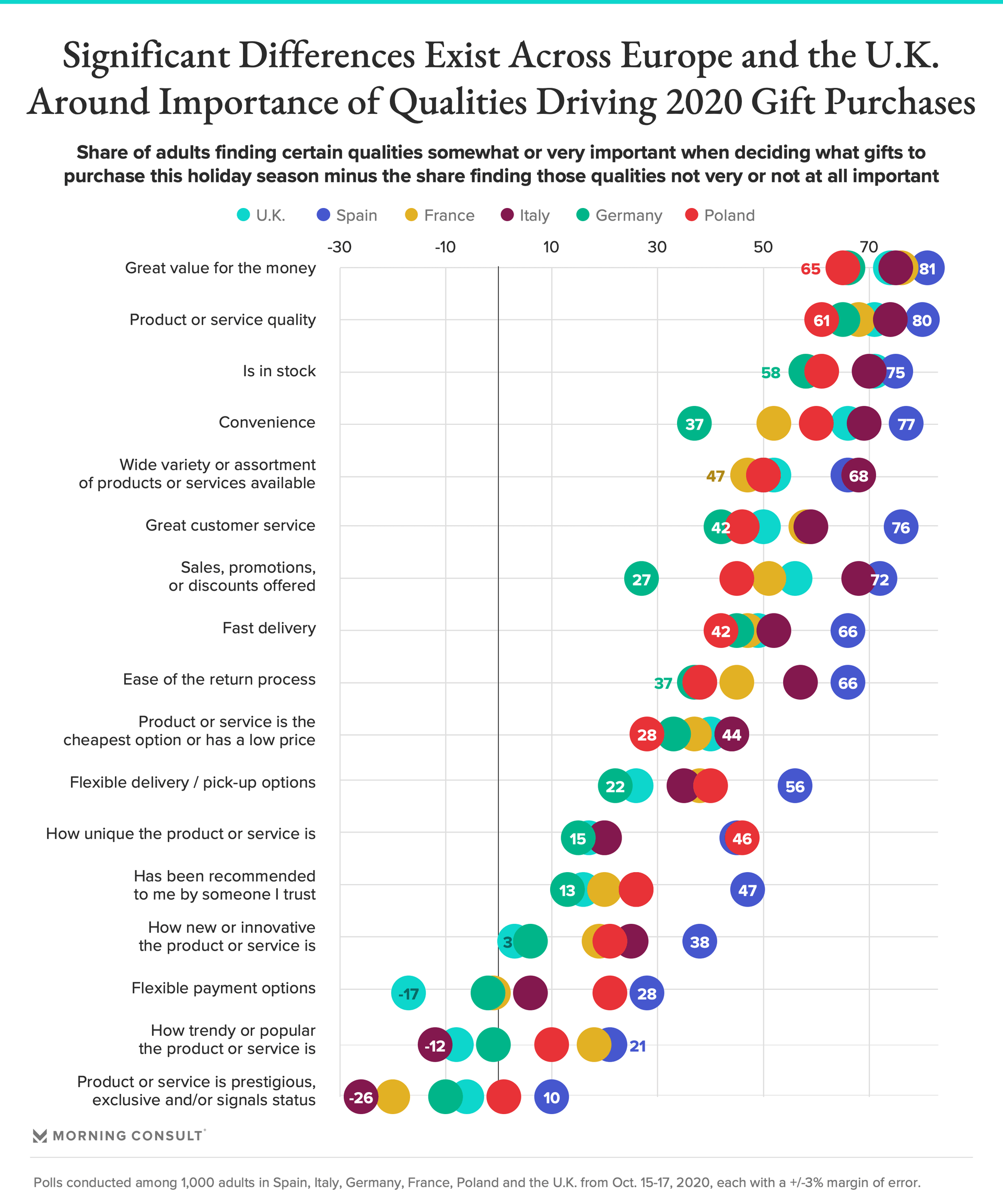- Polish shoppers are also more likely to find the item’s uniqueness and flexible payment options important.