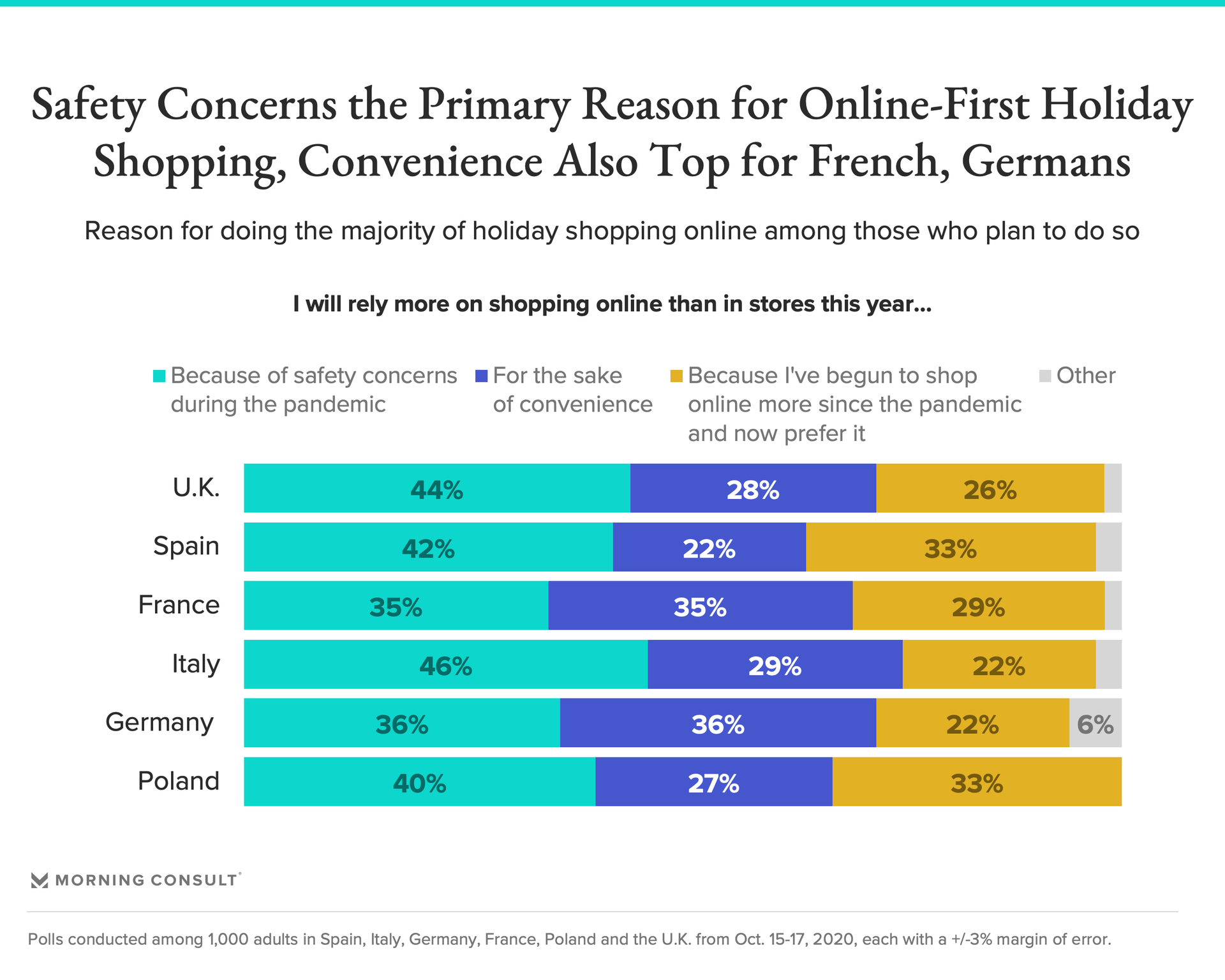 But across markets, those planning to do the majority of their shopping online this year cite pandemic-induced safety concerns as the primary reason why — though convenience is an equally strong driver of online shopping for French and German consumers. Still, a genuine preference for online shopping driven by increased comfort with this method due to COVID-19 is the main reason behind online-first holiday shopping for a third of Spanish and Polish shoppers.