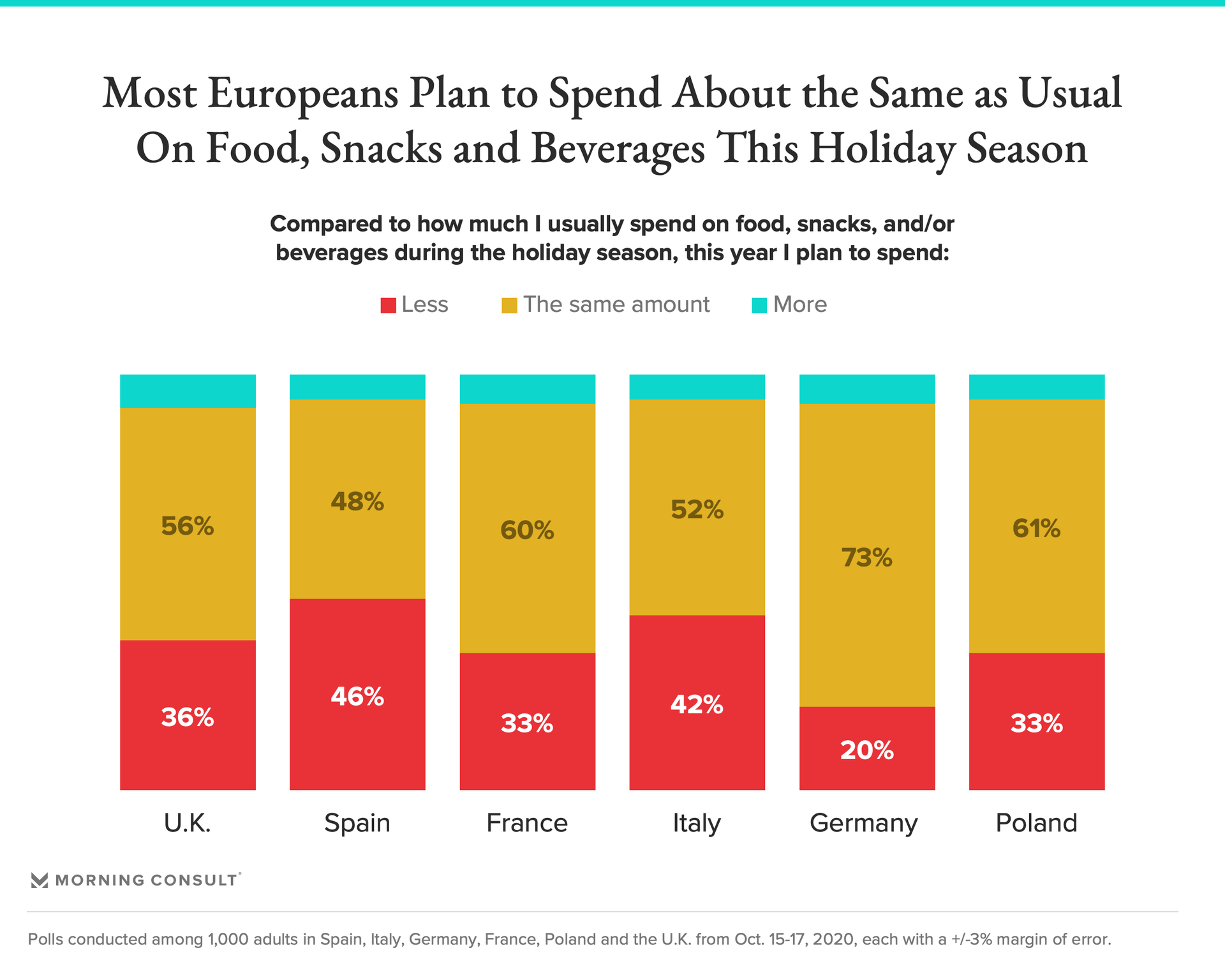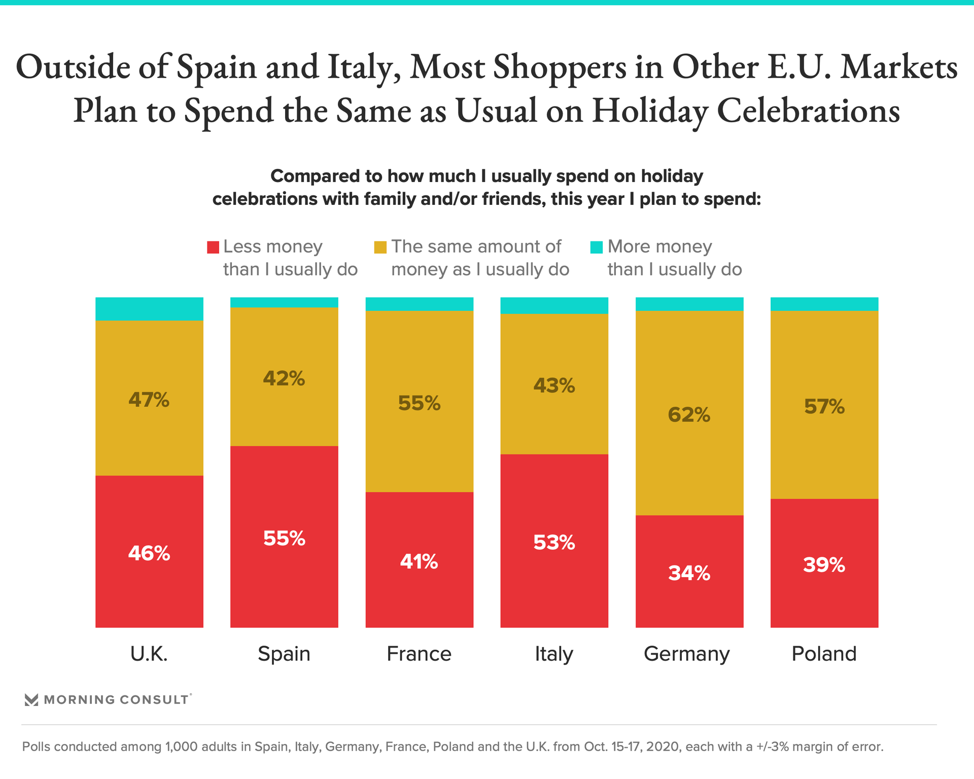 With the exception of Spanish and Italian consumers, the majority of which both plan to spend less than usual on holiday celebrations this year, most consumers in other markets expect to spend the same as they usually do.