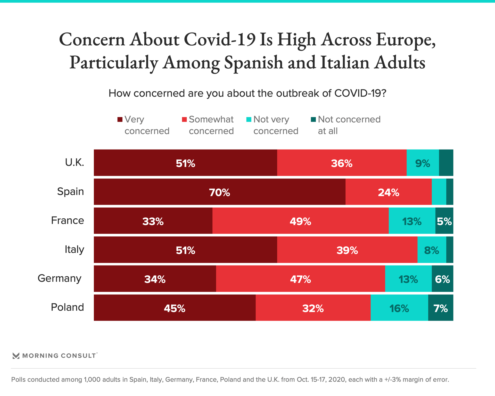 More locally, recent resurgences have left an overwhelming majority of Europeans concerned about the COVID-19 outbreak, though Polish and German adults are relatively less worried. As the outbreak rises, the share of concerned Italians has most noticeably jumped, up 11 points since late June.