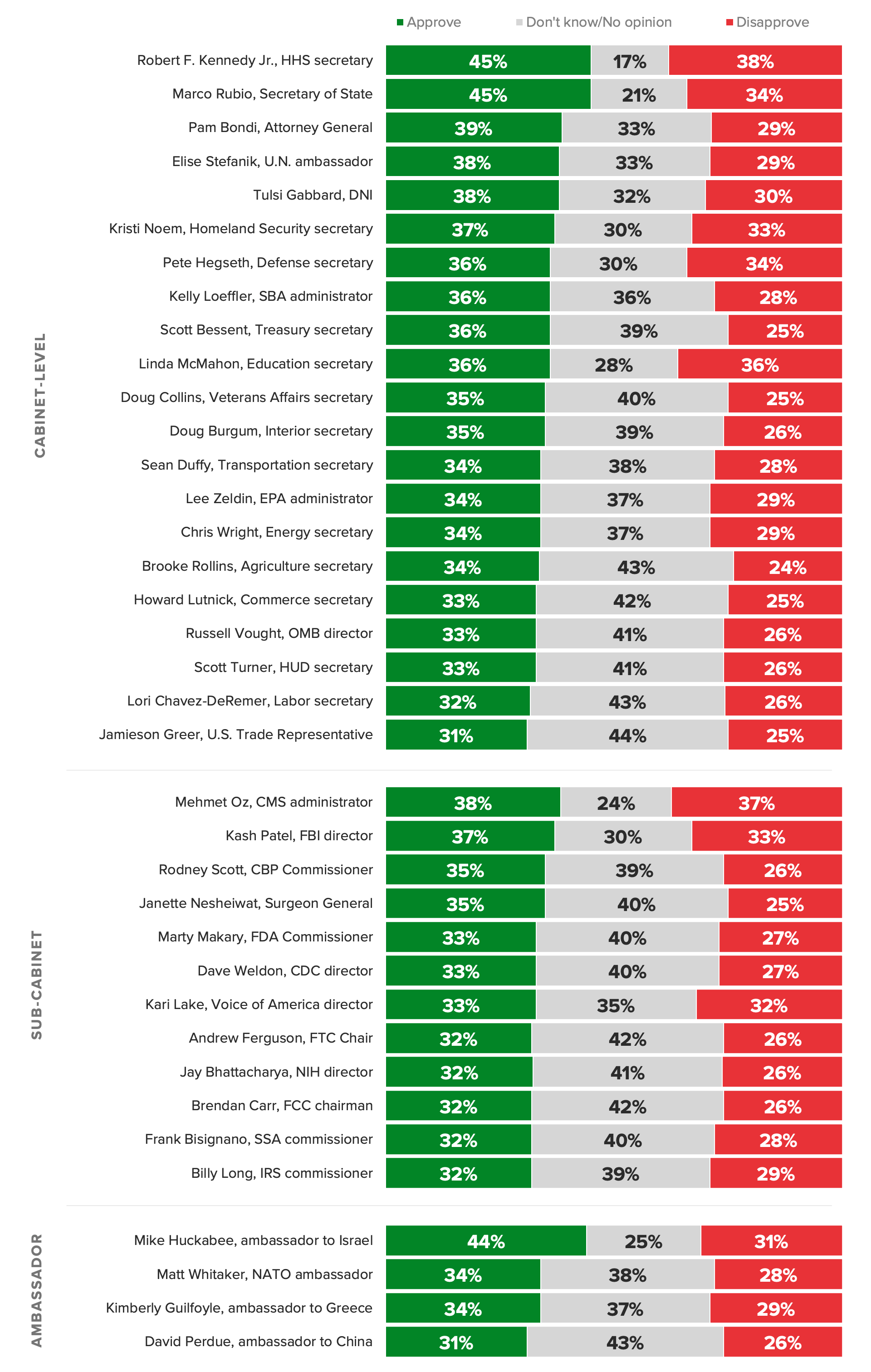 Kennedy, who spent the week on Capitol Hill attempting to woo senators, is tied for the highest level of public support for his Senate-confirmed post, matching the share of voters backing Florida Sen. Marco Rubio’s bid to become secretary of State. But he also is among the figures who generate the most opposition from voters.