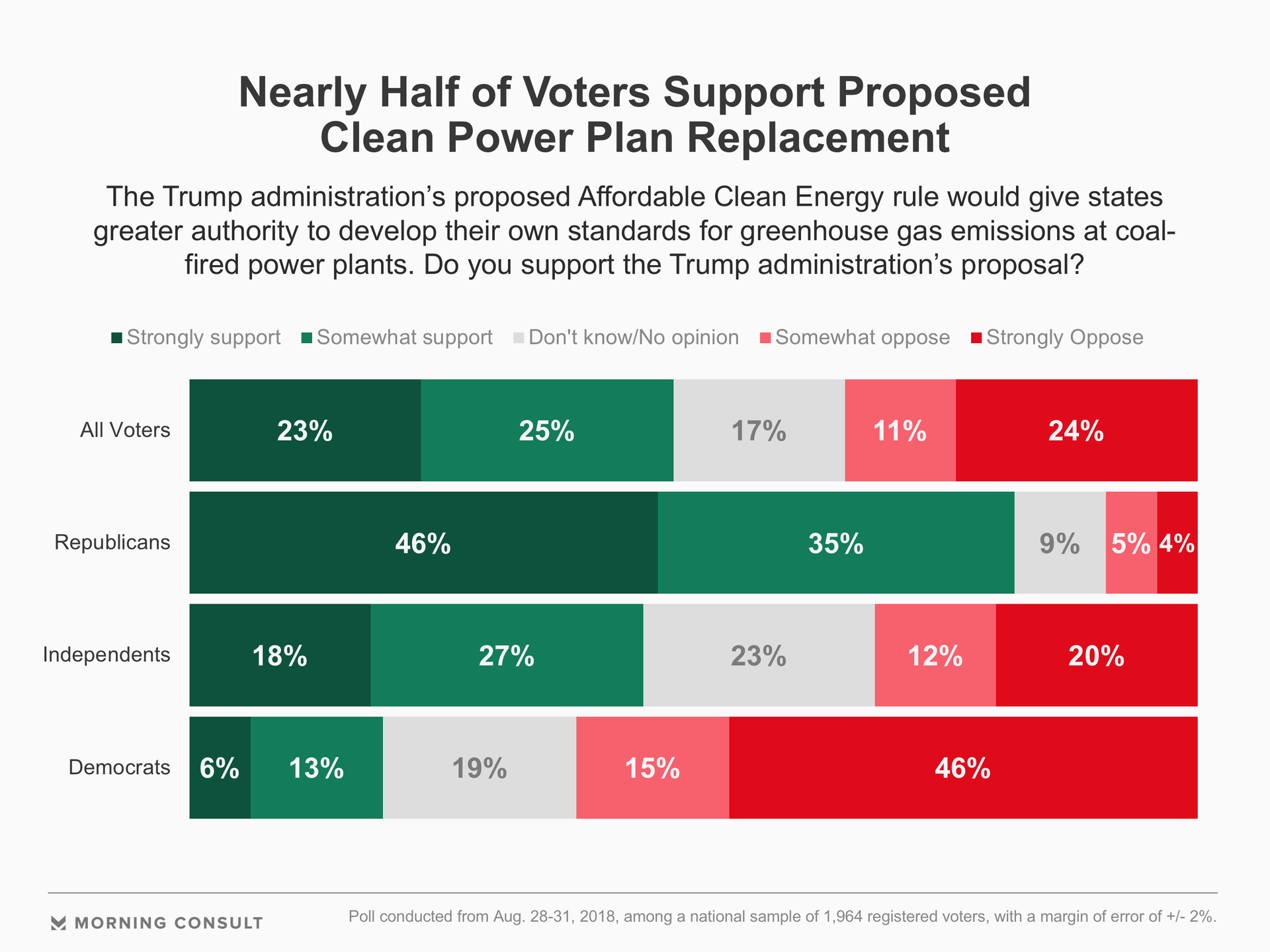 Forty-six percent of Republicans say they strongly support the proposal, along with an additional 35 percent of GOP voters who somewhat support the initiative. Forty-five percent of independents and 19 percent of Democrats also say they back the proposed rule. The poll has a margin of error of 2 percentage points.