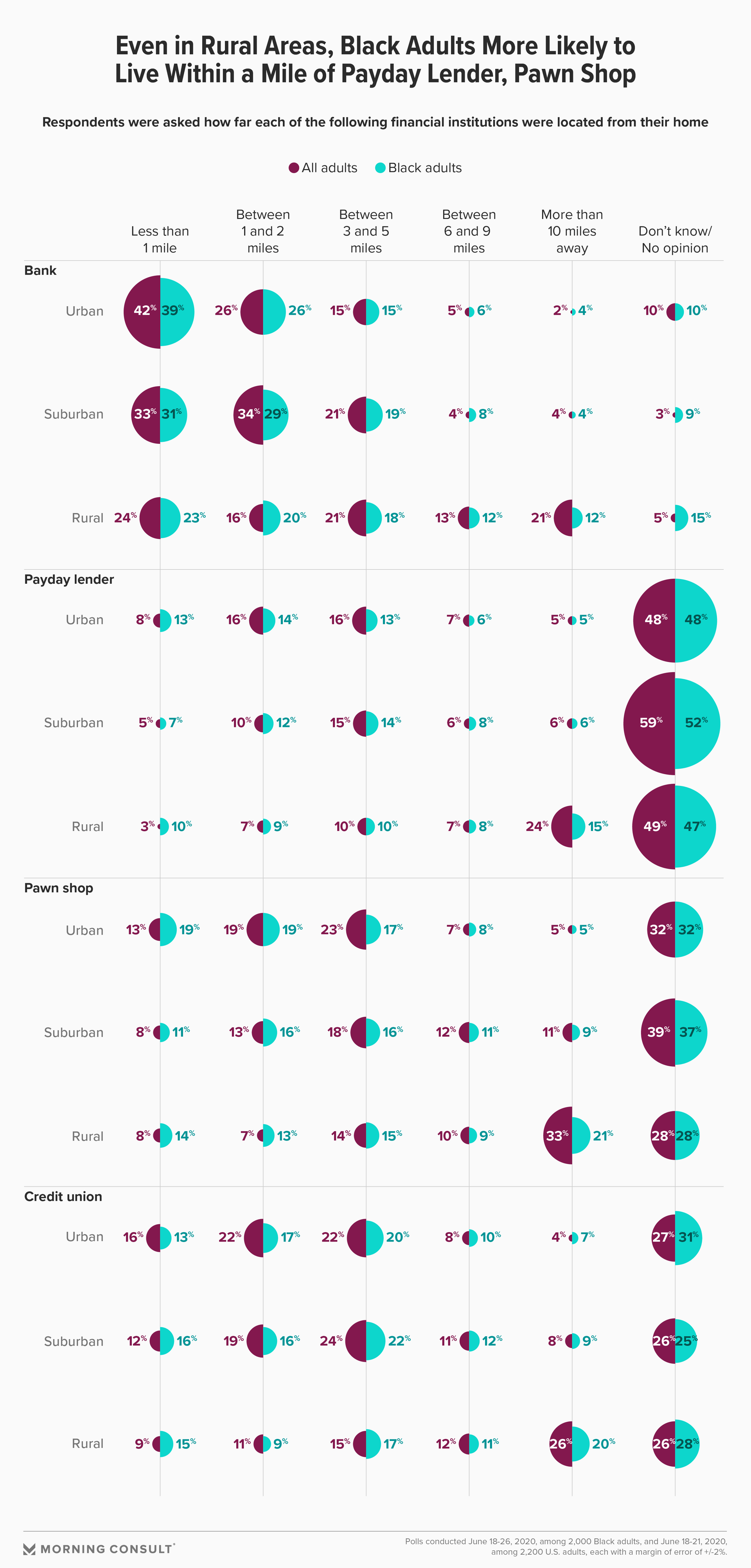 Morning Consult broke down the data by urban, rural and suburban respondents to get a better understanding of financial services in Black communities across the board.