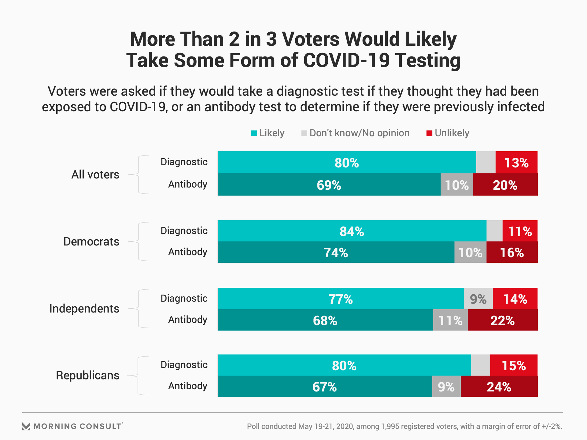 Almost 7 in 10 voters said they would take an antibody test to determine if they previously were infected with COVID-19.