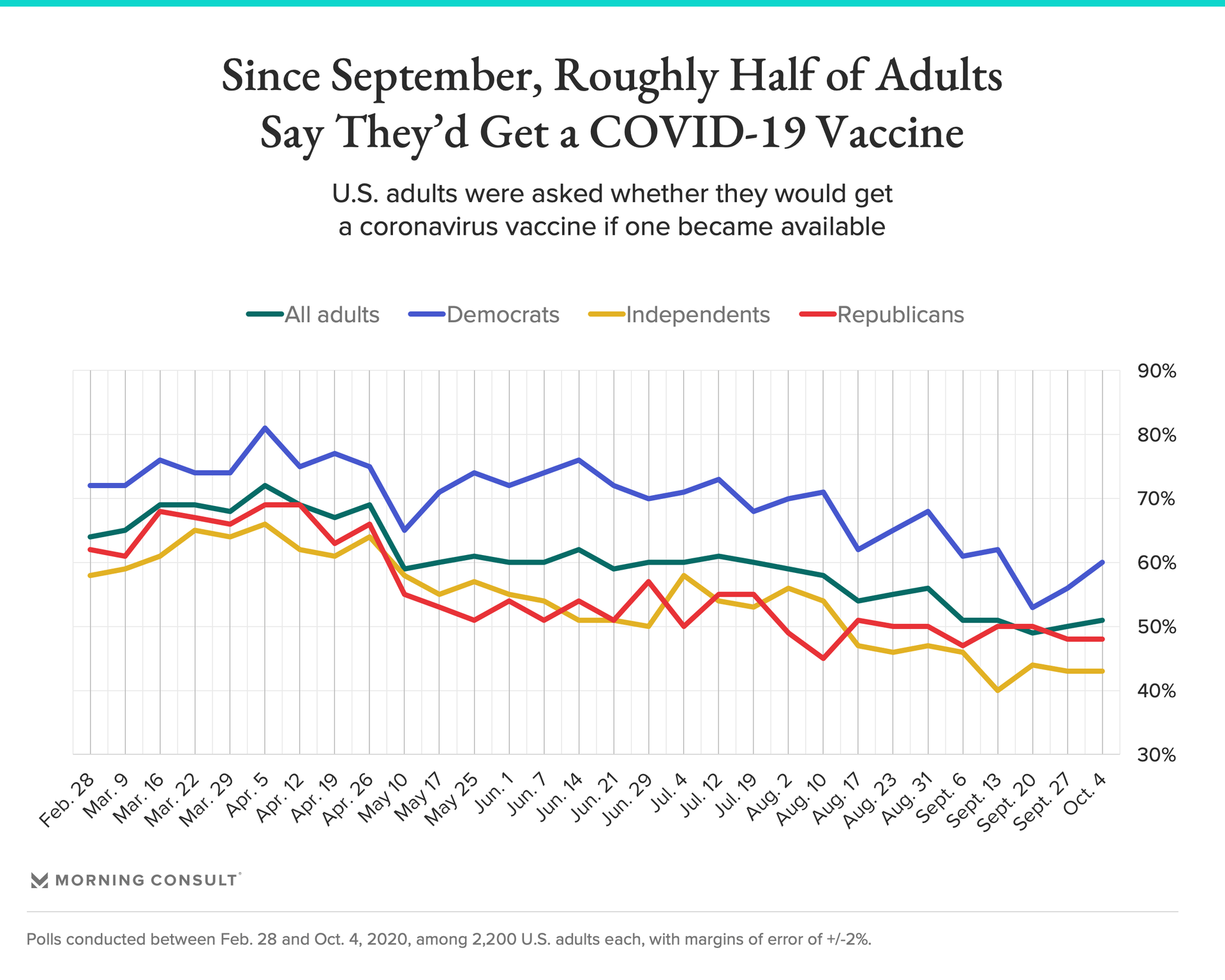 Some of these variables can’t be helped at this stage, such as which vaccine candidates will be authorized and sent to states. Among the 19 states that responded to Morning Consult’s questions on their coronavirus vaccination plans, most said they felt confident they’d meet the CDC’s Oct. 16 deadline but would need to continue to update their plans afterward. Public health officials are used to responding to unpredictable situations and will account for that in their coronavirus vaccine plans, said Dr. Marcus Plescia, chief medical officer of the Association of State and Territorial Health Officials.