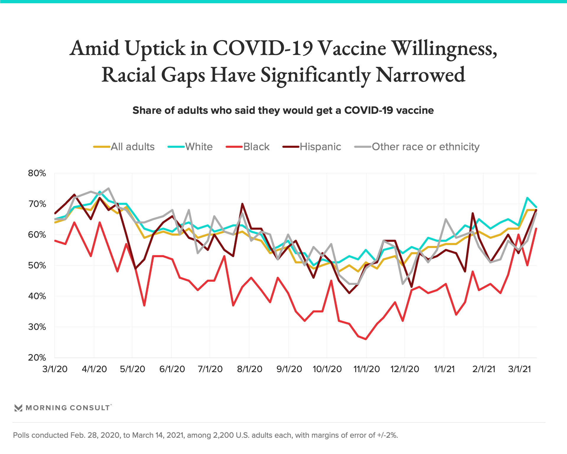 Racial Gaps in Vaccine Willingness Are Narrowing, but Partisan Ones Persist