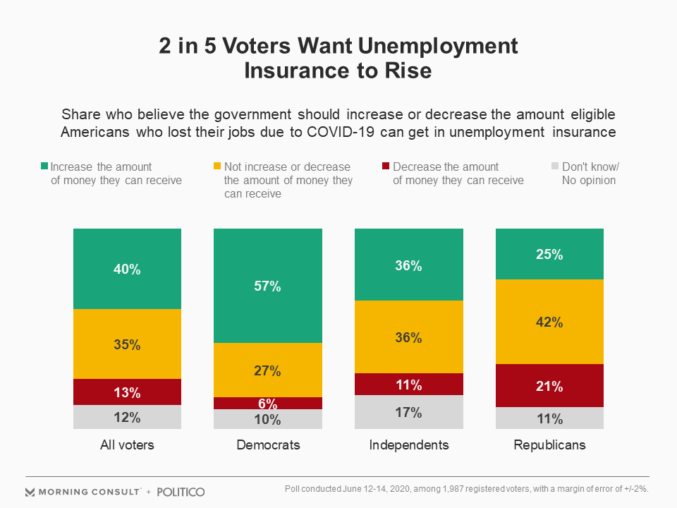 40% of voters said the government should increase the amount of unemployment benefits to workers who have lost their jobs in the coronavirus pandemic.