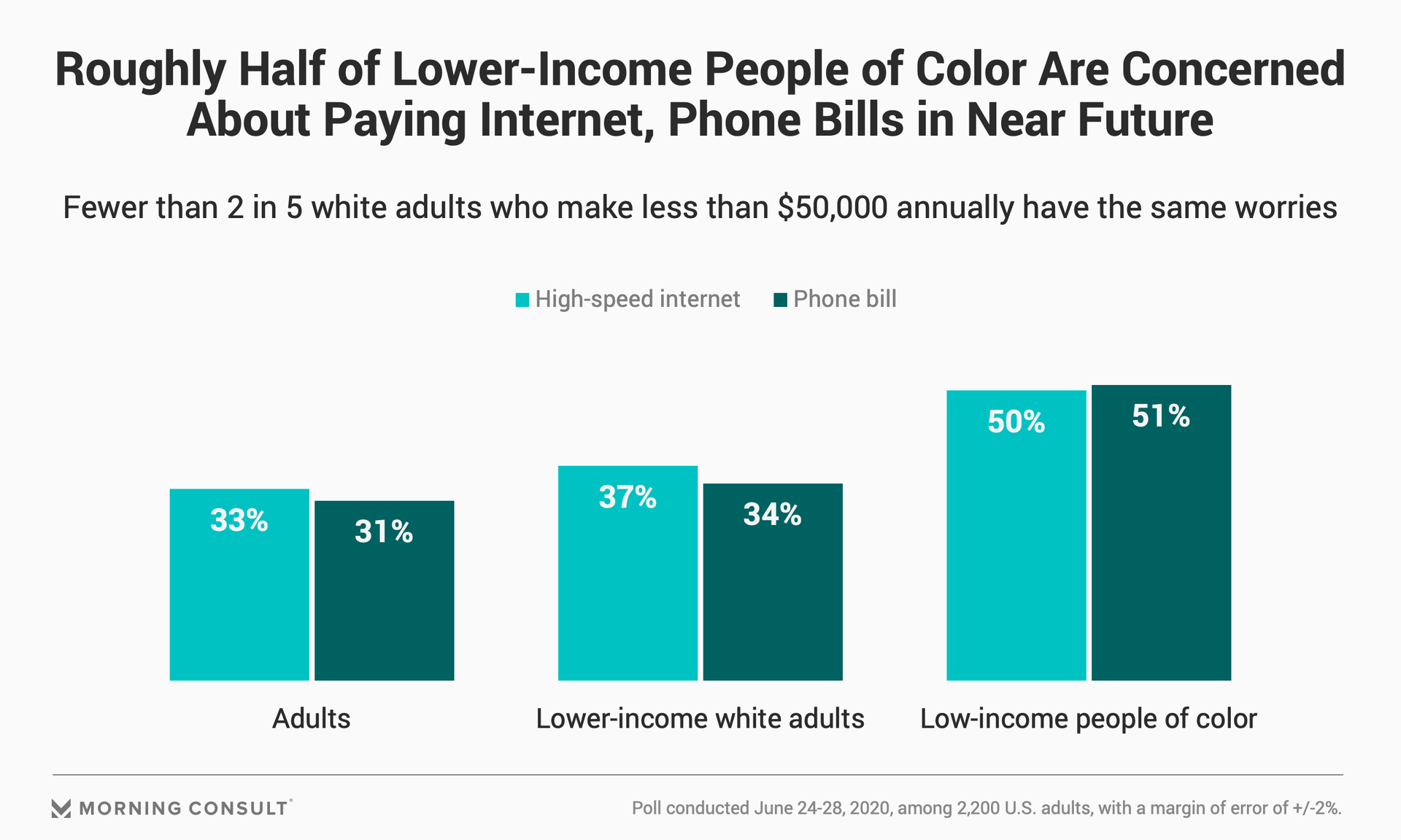 The elimination of the Federal Communications Commission’s initiative to keep internet providers from terminating service for customers who can’t pay their bills due to the coronavirus pandemic will put lower-income people of color at more risk of losing their at-home connectivity than their white counterparts, a new Morning Consult poll suggests.
