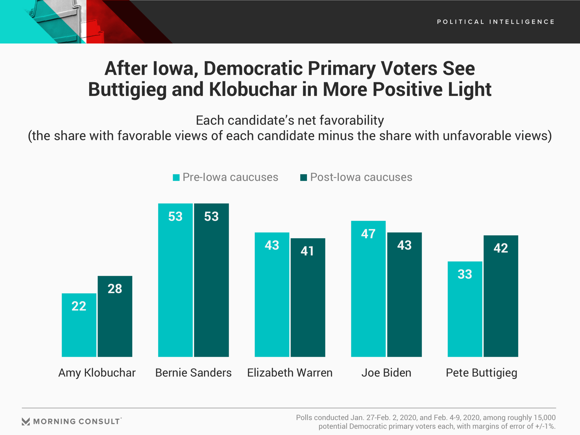 Morning Consult’s latest results are based on 36,180 surveys with registered voters, including 15,346 surveys with Democratic primary voters, conducted Feb. 4-9, 2020.