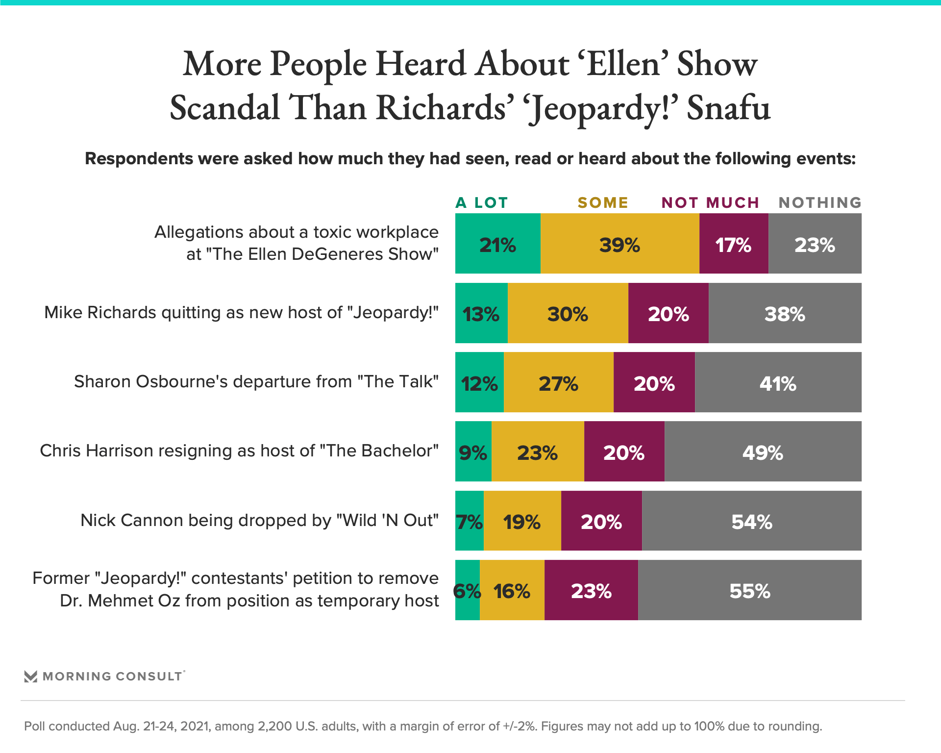 Only 13% of adults heard “a lot” about Richards’ decision to quit as host.