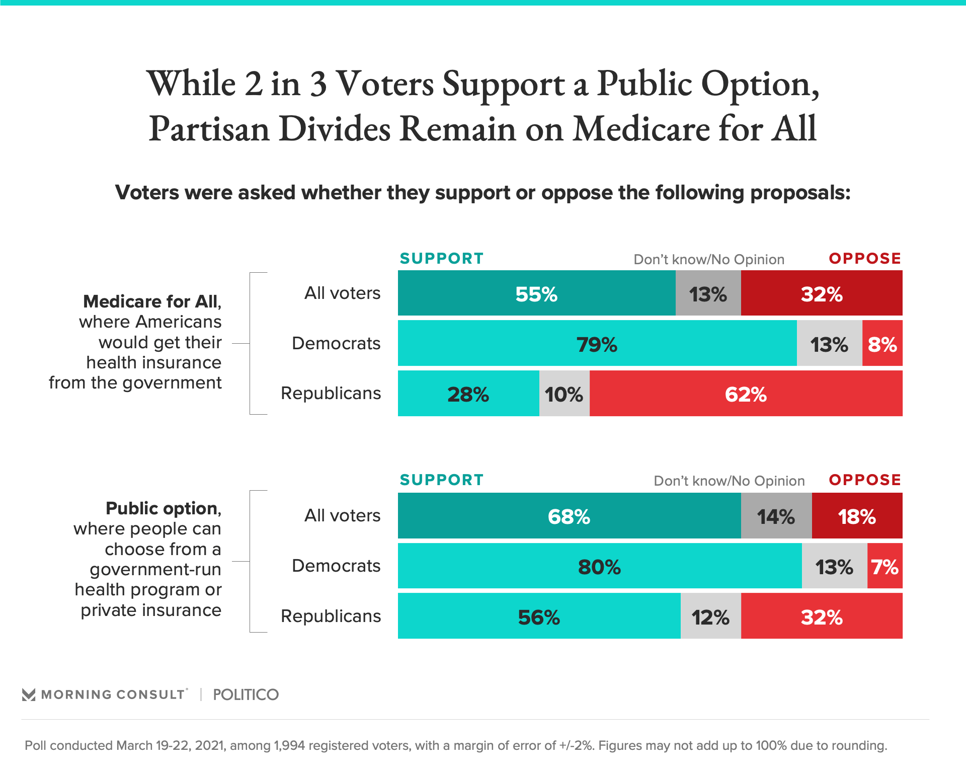 68% of voters support a public health insurance option, including 80% of Democrats and 56% of Republicans.