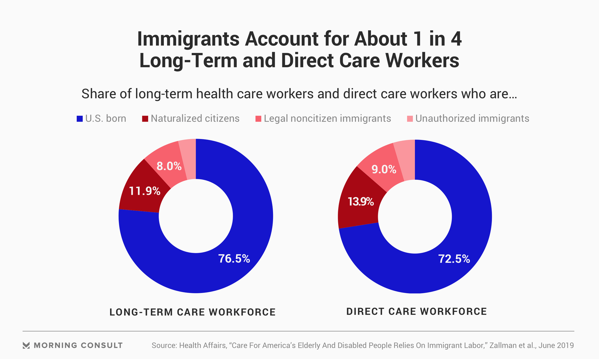 That’s according to a new study published in Health Affairs, which found that immigrants make up nearly 1 in 4 workers in the formal and nonformal long-term care sector and over a quarter of direct care workers. President Donald Trump’s proposals to reduce immigration, paired with rhetoric dissuading foreign-born workers from migrating to the United States, could have a deleterious effect on seniors and people with disabilities, the researchers concluded, especially as federal health officials prepare for already inevitable shortages in the health care workforce.