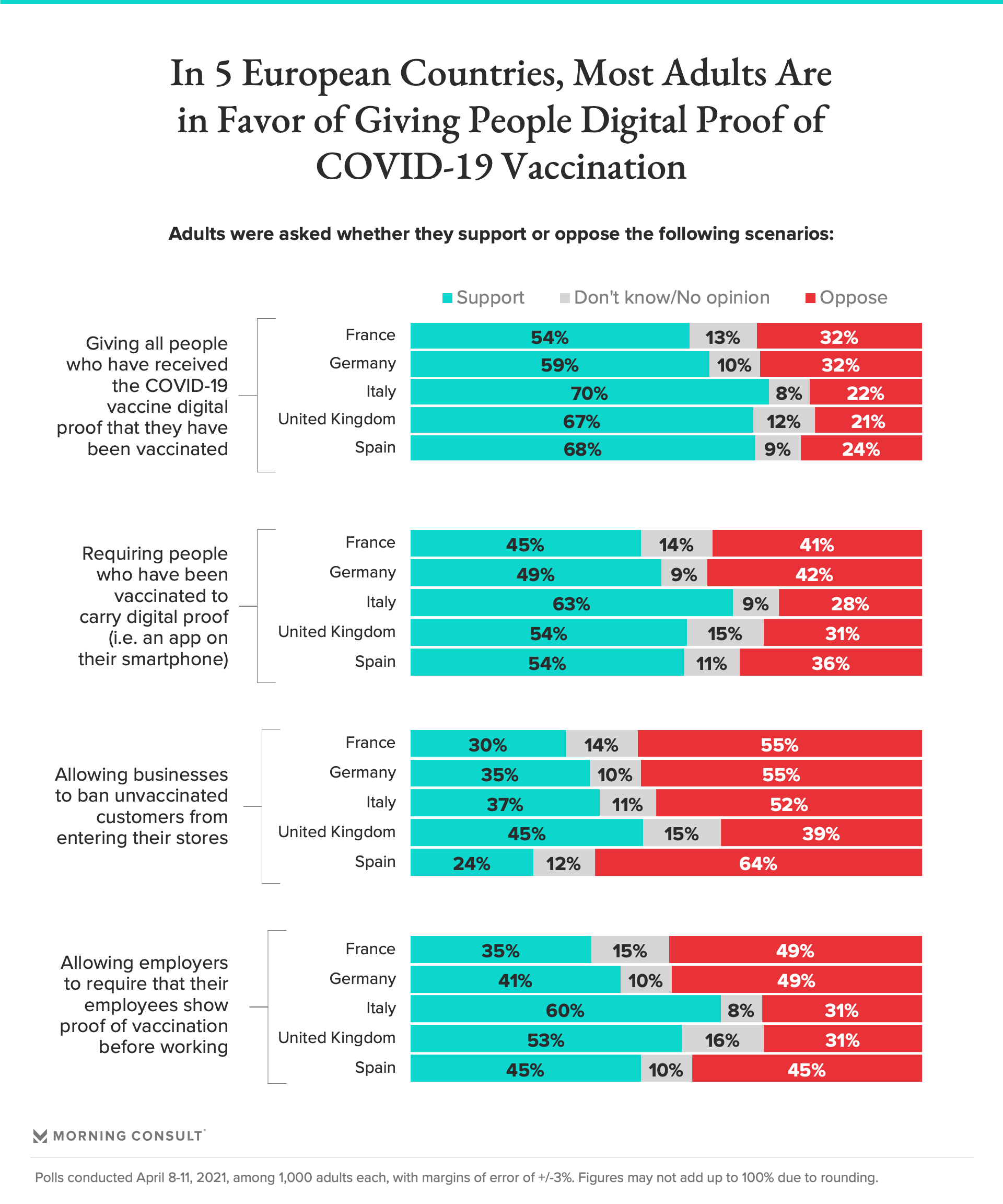 Most Adults in 5 European Countries Support Giving People Digital COVID-19 Vaccine Certification
