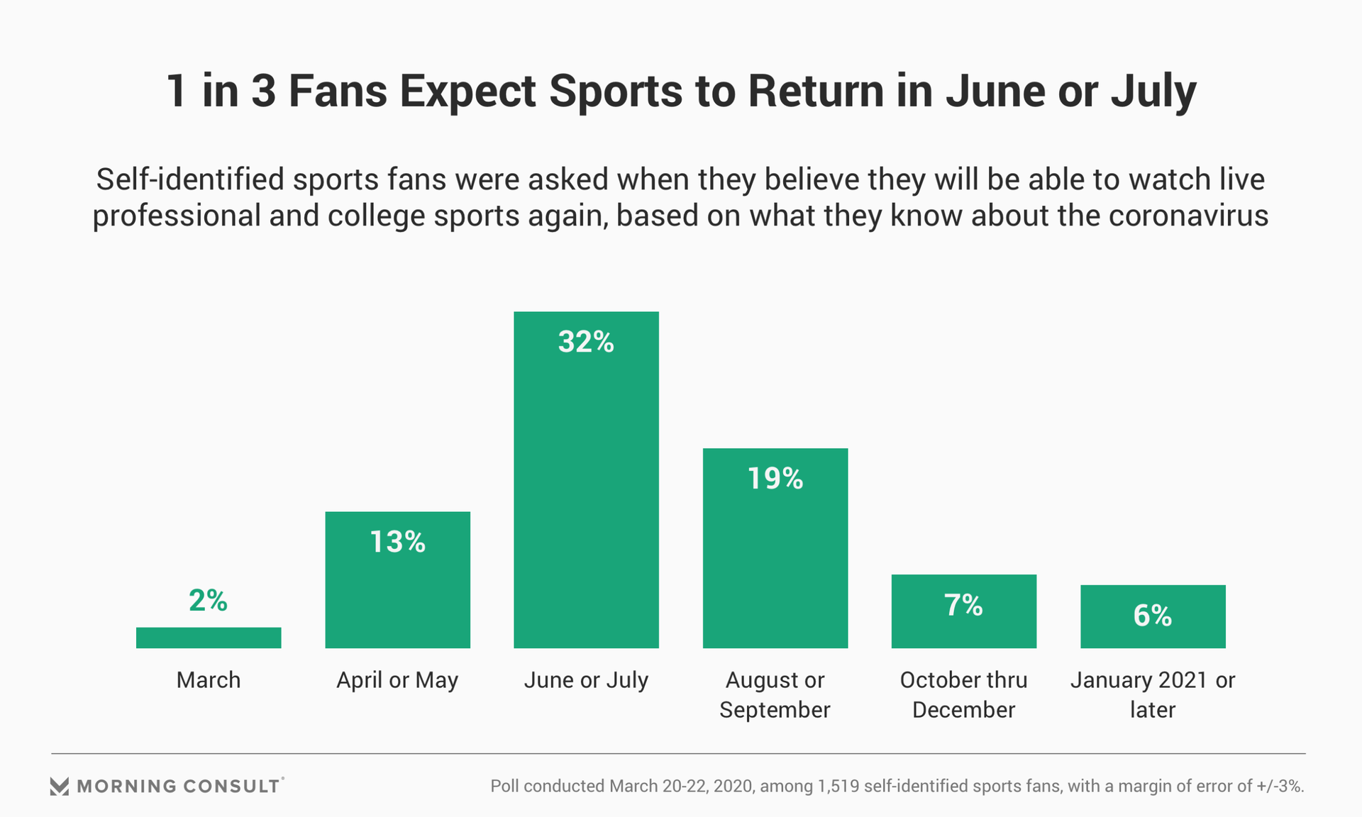 32% of sports fans believe they’ll be able to watch live sports again in June or July.